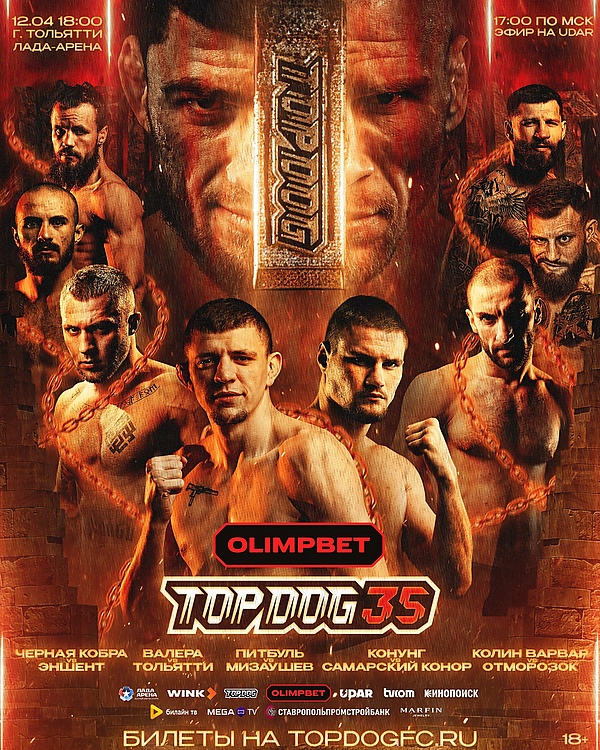 12 апреля в городе Тольятти, Самарская область, состоялся турнир Top Dog 35. Главным поединком изначально должна была стать первая защита перстня Магомеда «Чёрной Кобры» Магомедова против претендента Виталия «Antient» Старых, но претендент по причине ухудшения здоровья был вынужден сняться с турнира. По итогу поединок было решено перенести на турнир TDFC 36. Главным поединком стал изначально запланированный со-главный бой Валерия Заботина и местного бойца, Кирилла «Тольятти» Черняева. Формат главного боя не поменялся, и регламент сохранил трёхраундовый бой поединка. Первый раунд прошёл с небольшим преимуществом Заботина, а второй и третий прошли под контролем Черняева. Но во втором раунде Черняеву был отсчитан нокдаун, который и оказал решающую роль в итоговом счёте — Валерий Заботин победил единогласным решением судей. Черняев не согласился с отсчитанным нокдауном, но апелляцию подавать не стал. Данная схватка стала второй для Забоина и Черняева. Впервые они встретились в лиге Наше Дело, где провели поединок по боксу в ММА-перчатках, который завершился ничейным результатом. В со-главном поединке за звание обязательного претендента в полусредней весовой категории (до 77 кг) Александр «Питбуль» Татарский неожиданно победил фаворита схватки Музарина Мизаушева. Мизаушев выиграл первый раунд, в котором после потрясения, Татарский повредил ногу. И когда многим казалось что Татарский уже может сняться с боя после первого раунда, он вышел в бой после перерыва и забрал 2 и 3 раунды, что гарантировало ему уверенную победу по очкам[5].