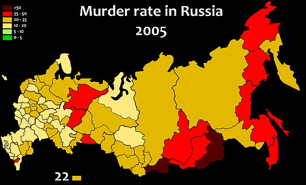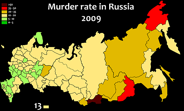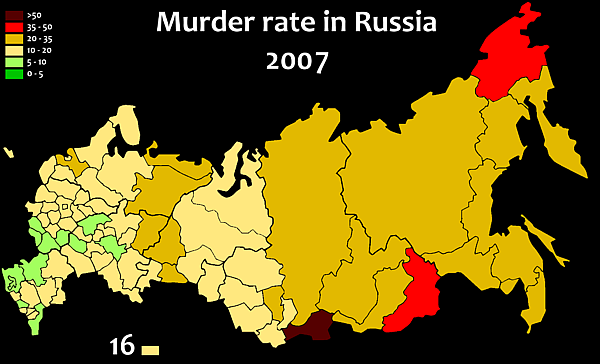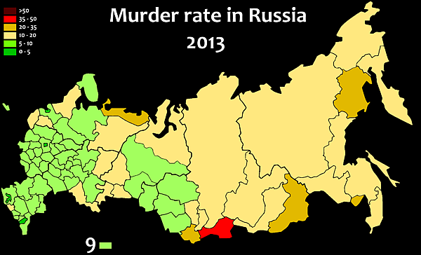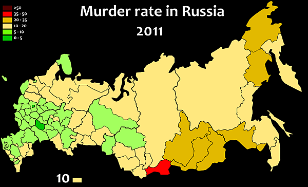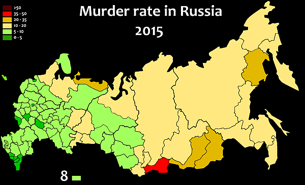 Список субъектов РФ по показателям убийств (количество убийств на 100 000)