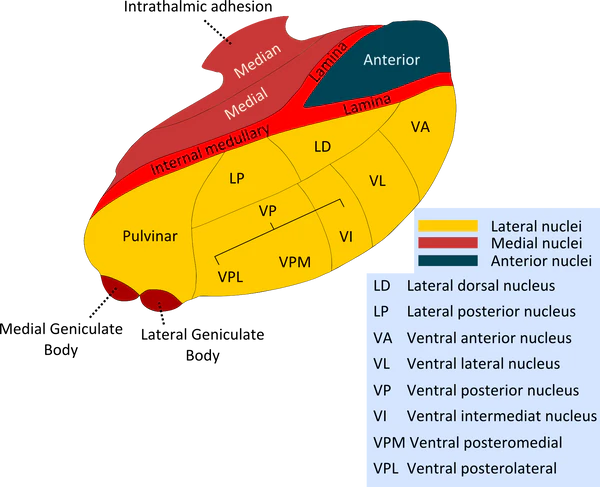 Этот традиционный список ядер таламуса не соответствует строго анатомии таламуса именно у человека, и является более обобщённым.