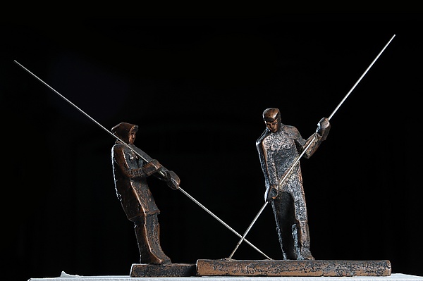 Изделие изготовлено из меди и алюминия. Применение техники формовки и литья позволяет создать детализированные и выразительные формы. Такой подход обеспечивает прочность и долговечность скульптуры, а также высокое качество поверхности и проработку мелких деталей.