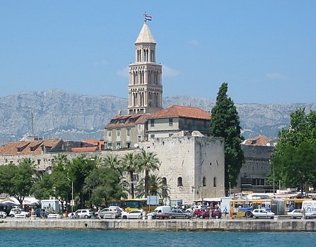 - Дворец Диоклетиана — четырёхугольный мини-город, отделённый от остального города высокими стенами. Южная стена дворца выходит на набережную, северная — к парку Штроссмайера, восточная — к городскому рынку, а западная — к Народной площади и старому городу вокруг неё. Внутри дворца находятся: