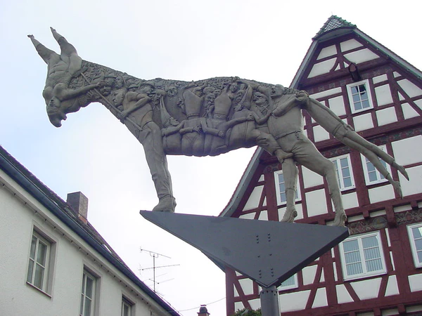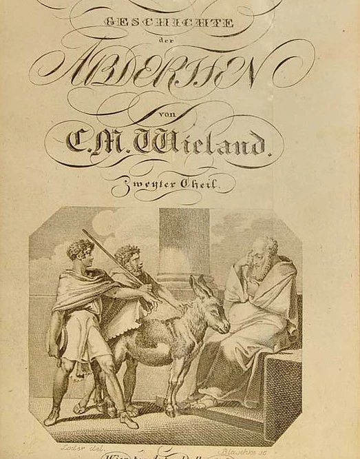 Вольное подражание «Абдеритам» Виланда — комедия немецкого поэта и переводчика Людвига Фульды (1862—1939). Пьеса была создана в 1921 году[12]. Немецкий скульптор Петер Ленк (род. 1947) создал статую, иллюстрирующую этот рассказ Виланда. Она находится на рыночной площади в городе Биберах-ан-дер-Рис. Статуя представляет фигуру осла, на которой в форме барельефа изображены фигуры, спорящих и дерущихся людей. Среди них присутствуют Гельмут Коль, Ангела Меркель, представители администрации и духовенства города Бибераха. Скульптура была установлена в 2000 году[13][14].