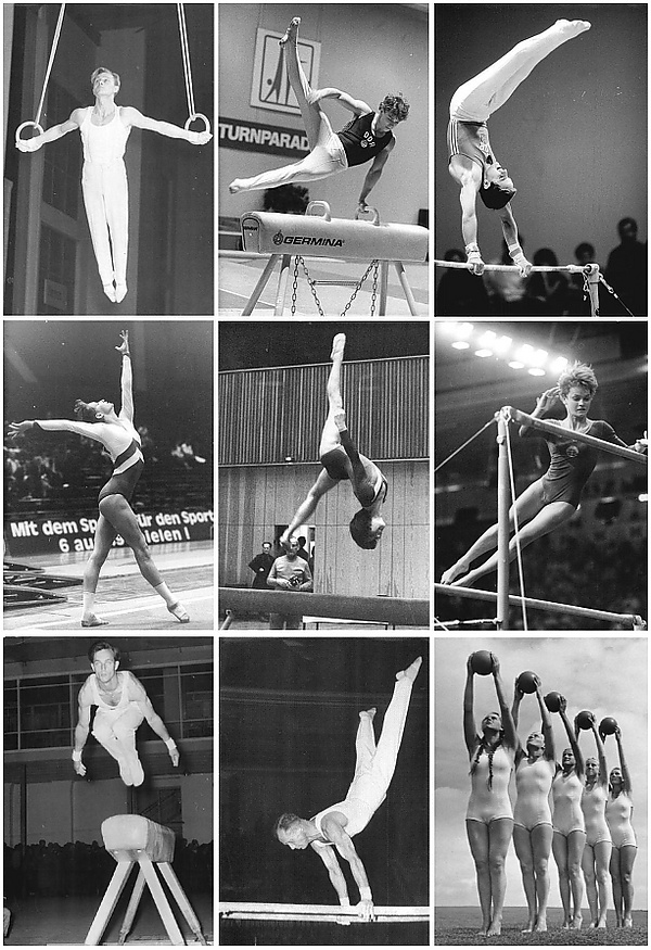 Становление и развитие спортивной гимнастики связано с именами таких педагогов и тренеров, как В. В. Соколовский, Г. С. Егнатошвили, Б. Н. Астафьев, А. С. Бакрадзе, Л. П. Орлов, Н. Н. Миронов и др., спортсменов М. В. Тышко, Т. А. Демиденко. Е. А. Боковой, Г. Н. Урбанович, Г. В. Рцхиладзе, М. Д. Дмитриева, А. М. Ибадулаева, Н. П. Серого, М. Д. Касьяника, А. И. Джорджадзе, Е. И. Гавриловой, А. П. Колтановского и др.