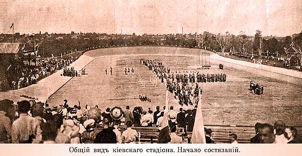 На лето 1913 года правительство Российской империи запланировало провести Первую Всероссийскую олимпиаду в Киеве. Спортивный комитет выделил на соревнование 10 тысяч рублей. 13 июля Олимпийский комитет в конторе нотариуса О. М. Боробикина заключил соглашение на аренду «Спортивного поля», на котором должна была состояться основная часть соревнований. Уже до конца месяца были подготовлены к соревнованиям трибуны, велотрек, беговые дорожки, гимнастический инвентарь. Особенное внимание уделялось сооружению ложи для высоких гостей. Её установили на возвышении, декорировали по последней моде и украсили цветами национального флага. Кроме центральной, были построены ложи для зрителей стоимостью в 10 рублей каждая. Места для сидения оценивались в зависимости от близости к центральной ложе — от 5 рублей до 75 копеек за место. Бралась плата и за стоячие места. .