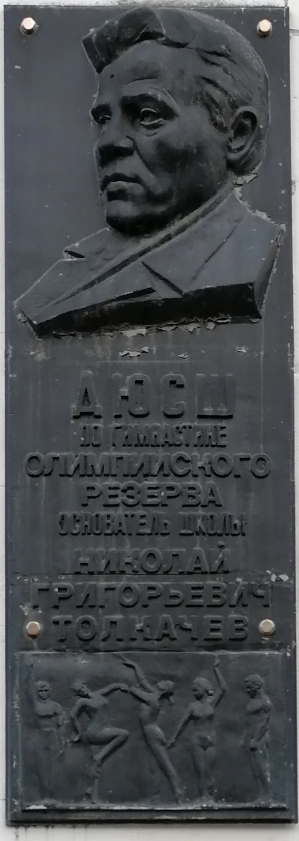 д. 1 — СДЮСШОР им. Н. Г. Толкачева[8], мемориальная доска Николаю Толкачёву (скульптор В. А. Шанин).
