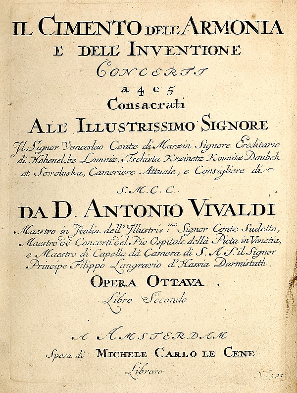 Сборник опубликован в амстердамской мастерской Мишеля-Шарля Ле Сена и посвящён Вацлаву (Венцелю), графу фон Морцину, советнику Карла VI, императора Священной Римской империи (не путать с Карлом Йозефом, графом фон Морцином, благодетелем Йозефа Гайдна).