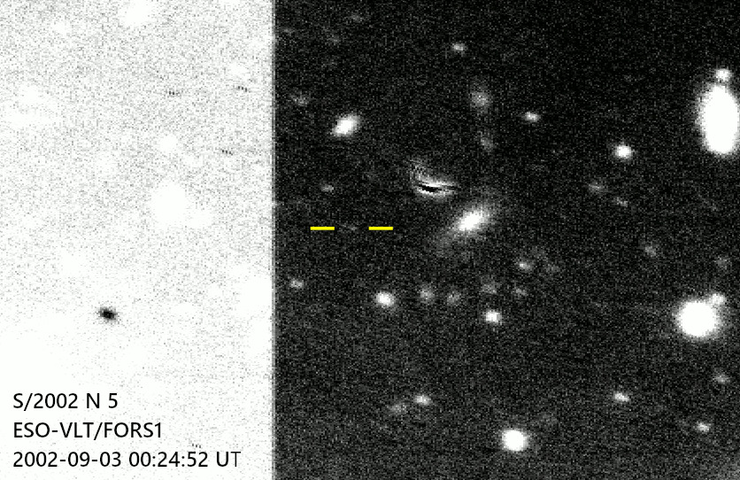 В 2002—2003 годах было открыто ещё пять спутников Нептуна. Каждый из новооткрытых объектов имеет диаметр 30-60 км и нерегулярную, вытянутую орбиту с большим наклоном, находящуюся за пределами орбиты Нереиды. Период их обращения вокруг Нептуна составляет от 5 до 26 земных лет.