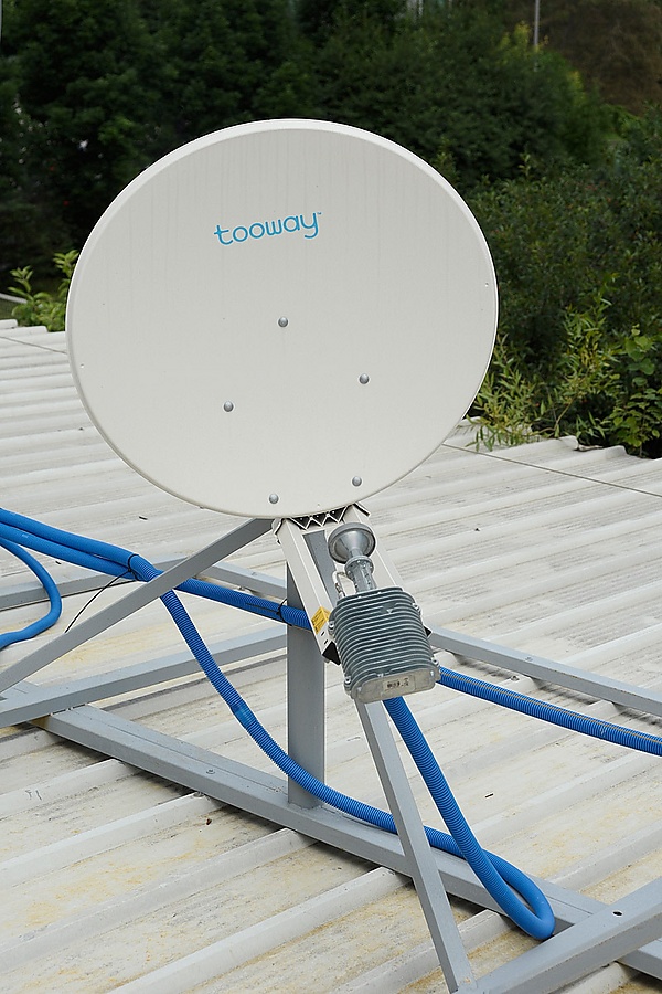 - Спутниковая антенна («тарелка») — такая же, как для приёма спутникового ТВ; как правило, достаточно антенны диаметром 90 см (но необходимо уточнять на сайте провайдера размер конкретно для вашей местности).