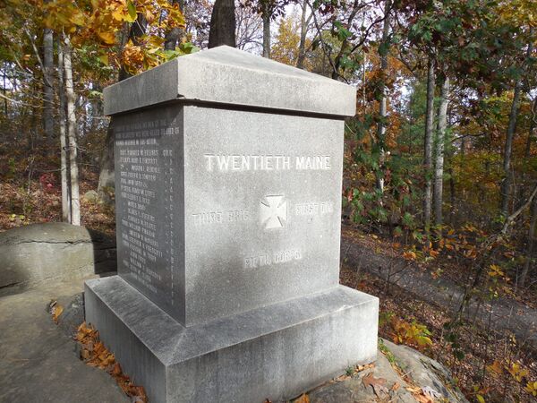 20-й Мэнский полк, который к началу боя насчитывал 358 человек, потерял 38 человек убитыми и 93 ранеными. В настоящее время на памятнике полку на геттисбергском поле боя выбиты имена 38 убитых солдат и офицеров: Капитан Чарльз Билингс (рота С), 1-й лейтенант Арад Линскотт (рота I), 2-й лейтенант Уоррен Кендалл (рота G), капрал Джозеф Симпсон (рота А), капрал Уиллард Пинкхам, капрал Эндрю Мэйбери, капрал Паскаль Типп, капрал Джон Фосс, капрал Уильям Ходгдон, капрал Мелвин Лоу. Рядовые: Джон Рид, сержант Исаак Эстес, Элиотт Фогг, Мосес Дэвис, Оливер Стивенс, Чарльз Бидль, Стивен Прескотт, Сет Кларк, Джон Уэнтворт, Оскар Уиер, Чарльз Холл, Бенжамин Грант, Фрэнк Кёртис, Элфин Росс, сержант Уильям Джордан, Джеймс Найт, 1-й сержант роты Н Чарльз Стил, сержант Джордж Бак, сержант Исаак Лэтроп, Аарон Эдамс, Гудвин Айрланд, Айрделл Лоусон, Александер Лестер, сержант Джордж Нойс, Джеймс Мерилл, Уильям Мерилл, Стивен Чейз и Уиллард Бакстон[60].