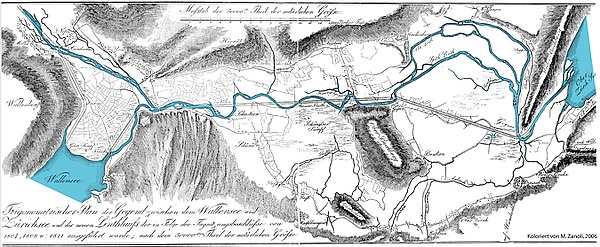 Не менее удачной была переправа и бригады Лаваля. Отряд Лоше в 3 часа утра высадился у Шмерикона и в устье Линта, а затем двинулся к Уцнаху, в то время, как батареи Леваля открыли огонь через реку с высот у разобранного моста. Австрийцы, которым угрожали с фланга, бежали к Уцнаху. Тотчас же рота французов переправилась на пароме через реку и заняла брошенные укрепления, а саперы приступили к исправлению моста.