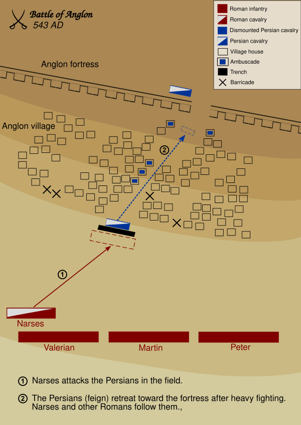 Единственный нарративный источник о сражении при Англоне — «Война с персами» Прокопия Кесарийского[1].