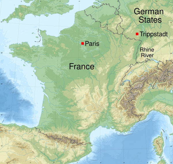 13 июля Рене Моро двинул свою армию на позиции пруссаков у Трипштадта. Она была поддержана крайней левой бригадой Рейнской армии под командой Сибо. Позиция у Трипштадта была окружена сильными редутами с установленными на них батареями. Пруссаки, чтобы увеличить препятствия, окружили себя засеками, а многочисленная кавалерия, 10 эскадронов, должна была помочь обороне. Левый фланг, расположенный в деревне Нойхоф, прикрывался несколькими батальонами. Тапонье решил атаковать оба фланга. Он разделил свои войска на три колонны: левая – 6 батальонов и 8 эскадронов, правая – 4 батальона, колонна центра должна была сковывать фронтальной атакой противника.