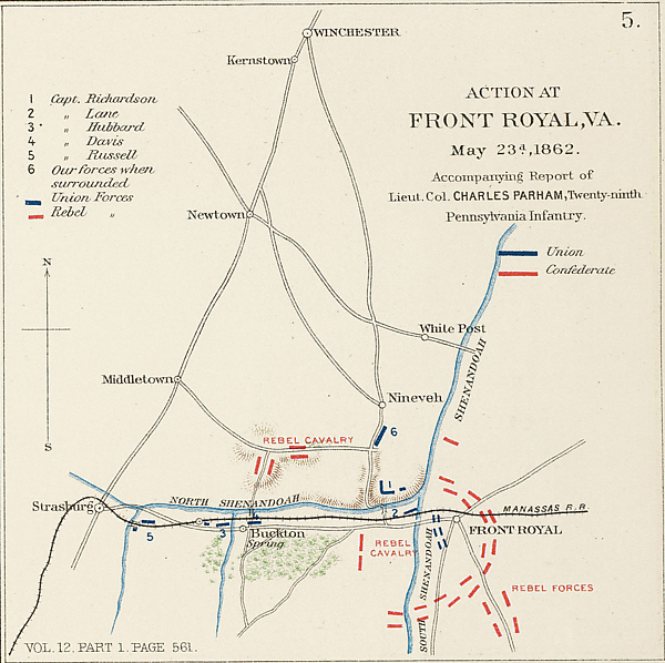 - Charles Parham. Report of Lieutenant Colonel Charles Parham, Twenty-ninth Pennsylvania Infantry, of action at Front Royal (англ.). The War of the Rebellion: Official Records of the Civil War. Дата обращения: 12 марта 2020.