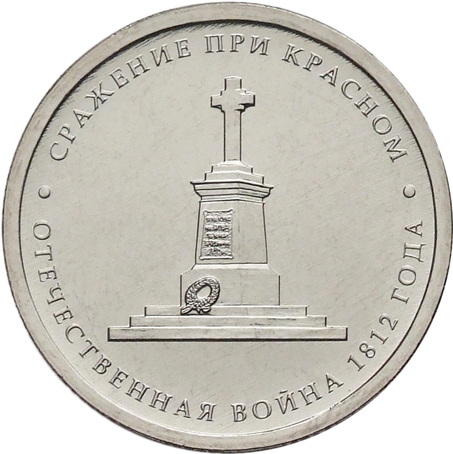 - Монета «Сражение при Красном» является первой памятной монетой России номиналом 5 рублей из недрагоценного сплава после 1993 года.