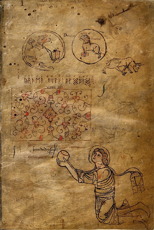 Беда Достопочтенный получил наилучшее для англосаксонской Британии воспитание и образование, владел латинским и греческим языками, и долгое время преподавал в родной обители Веармут-Ярроу, которую покидал всего два раза в жизни. Занимаясь на практике методами расчёта пасхалии и согласования систем исчисления лет у иудеев, римлян и англосаксов, Беда разработал настолько удачный метод, что он использовался Католической церковью в течение нескольких столетий. Другой круг проблем включал осмысление исторического времени и, как следствие, — создание собственной философии истории. В общем, Беда воспринимал время, сотворённое Богом, как линейное, направленное из прошлого в будущее, из вечности в вечность и стремящееся к собственному завершению[64]. Однако аллегорический метод толкования Писания привёл Беду к восприятию времени как симметрического, поскольку история имела свой центр и кульминацию — Боговоплощение и жизнь Христа среди людей. Поэтому любые события истолковывались как имеющие место до, во время и после переломного момента истории. Времена «до» и «после» в свете Воплощения как бы «смотрелись» друг в друга, взаимно отражая уже совершившиеся или грядущие события. Это позволяло, например, зеркально соотносить писания Ветхого и Нового Заветов. Это же ощущение сближения и взаимной отражённости позволяло судить об англосаксах как о новых иудеях[65].