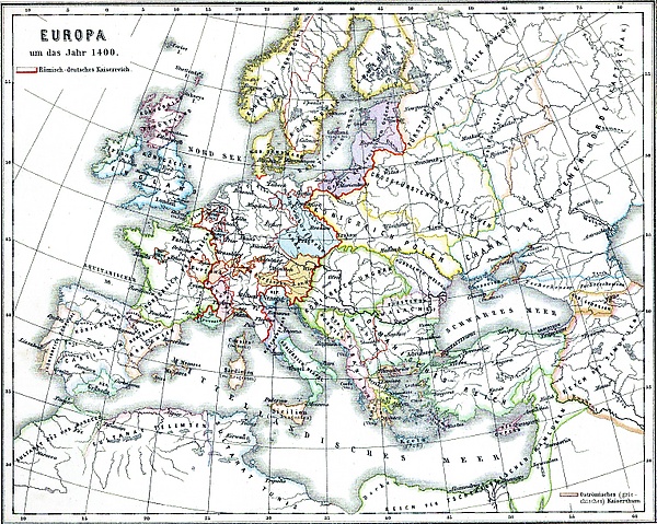 Большая часть XIV века прошла для всех европейских стран под знаком затяжного кризиса, для Франции, Англии и Фландрии усугублённым Столетней войной. В 1348—1350 годах весь континент был опустошён величайшей эпидемией чумы — «Чёрной смертью», рецидивы которой происходили в 1362 и последующие годы. Для авторитета католической церкви крайне негативную роль сыграло Авиньонское пленение, что дало дорогу многочисленным ересям[136]. С точки зрения историописания, по мнению Норберта Керскена, инноваций было мало, в основном происходила стабилизация созданных в XIII веке традиций и тиражирование тех или иных сочинений. Самостоятельная историческая традиция возникла в Шотландии[137].