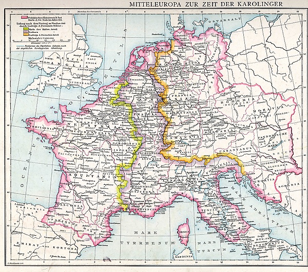 Несколько особняком стоит сочинение графа Нитгарда — внебрачного сына Ангильберта и Берты, одной из дочерей Карла Великого — «О раздорах сыновей Людовика Благочестивого». Книга эта отмечена глубоким пессимизмом и ярким противопоставлением процветания империи при Карле и наступившего позднее упадка. Это сочинение является и важным историческим источником, поскольку только в нём приводятся старофранцузский и старонемецкий тексты Страсбургской клятвы 842 года, а также описание саксонского восстания Стеллинга. Это последнее приписано козням Карла Лысого[81].