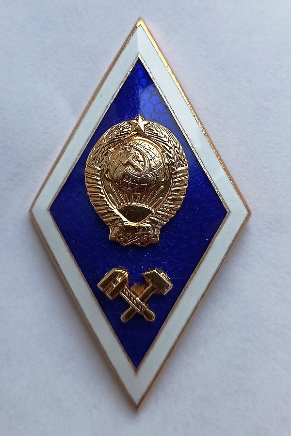 В советское время существовало среднее специальное образование, которое можно было получить в техникумах, а также в некоторых училищах (например, медицинское училище, педагогическое училище, ветеринарное училище, юридическое училище, а также военные училища (или средние специальные школы) готовящие прапорщиков и мичманов). С 1966 года в СССР лицам окончившим ссуз, в том числе ранее, выдавался отличительный нагрудный знак с отметкой в дипломе об образовании. Цвет эмали щита и эмблема знака зависели от полученной специальности (профиля обучения ссуз), цвет эмали окантовки знака — белый, форма щита была шестиугольная, размеры: длина — 40 мм, ширина — 25,5 мм, крепление на одежду — винтовое[1].