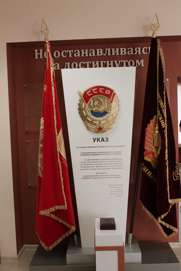 11 января 1971 года коллектив завода был награждён орденом Трудового Красного Знамени «за досрочное выполнение заданий восьмой пятилетки по выпуску меди и серной кислоты, успешное освоение новых производственных мощностей, высокие технико-экономические показатели»[3].