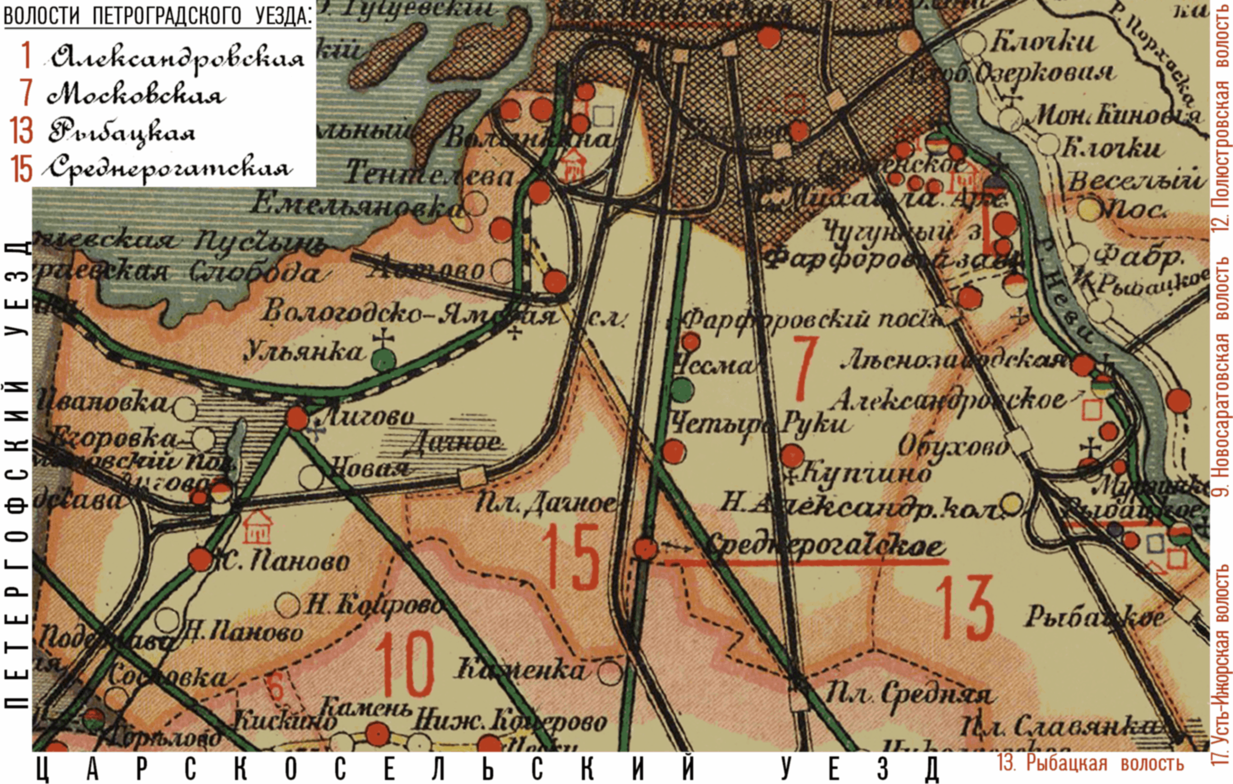 Карта Петроградского уезда |