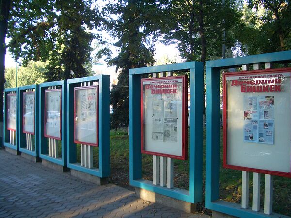 Новостные СМИ, как и телевидение и радио, ограничены в том, что они могут сообщать, и редко критикуют правительство. Журналисты в прошлом подвергались преследованиям и запугиванию, которые были как за, так и против правительства, и протестовали, когда президент взял на себя роль заместителя директора в государственной корпорации общественного вещания Киргизской Республики.