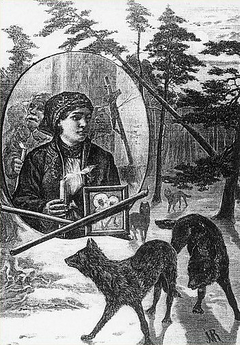 Известна польская легенда о встрече Громничной Богородицы с волком. В холодную февральскую ночь за Девой Марией крался волк. Этого волка искали крестьяне, чтобы убить. Встретив на дороге Богородицу, крестьяне спросили её — не видела ли она волка. Она ответила, что не видела, и не выдала волка. Затем Божья матерь предложила им поискать волка в своих сердцах и отправила по домам. Когда после этих слов крестьяне ушли, из-под её пальто высунулась голова волка. Богородица отругала его, но не смогла выдать волка, так как его страдания тронули её сердце[30]. У поляков существовало поверье, что Божья Матерь Громничная, и её атрибут «громничная свеча» — защищают от волков[31].