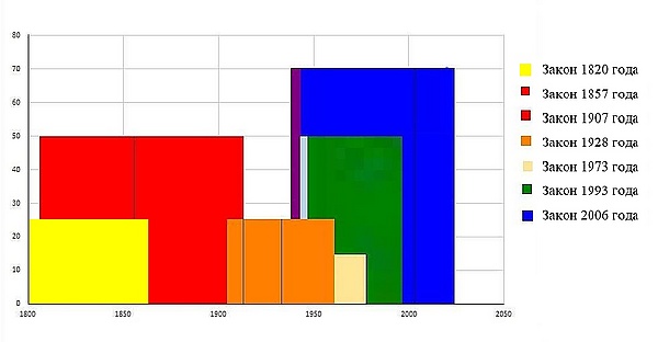 | Годы жизни + 70 лет [Годы жизни + 25 лет (1963—1994), Годы жизни + 50 лет (1994—2001)][218] |