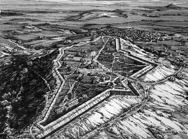 Крепость была окружена валом и рвом. Высота вала составляла 1,8 метра, ров имел глубину около 3,5 метра и ширину от 6 до 9 метров.