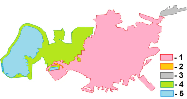 В 1938 году в Ворошиловске образованы три района: Кагановичский, Орджоникидзевский и Сталинский[49].