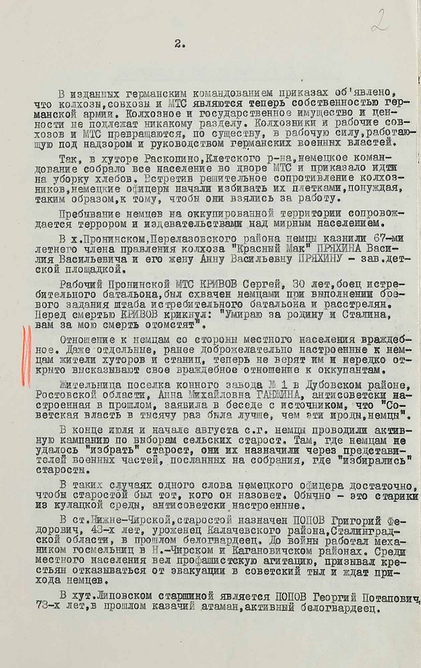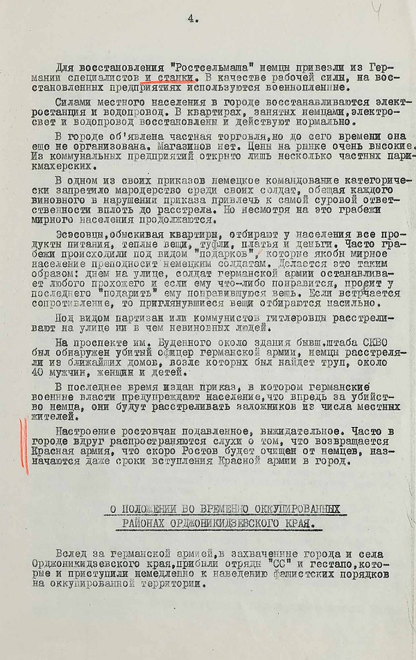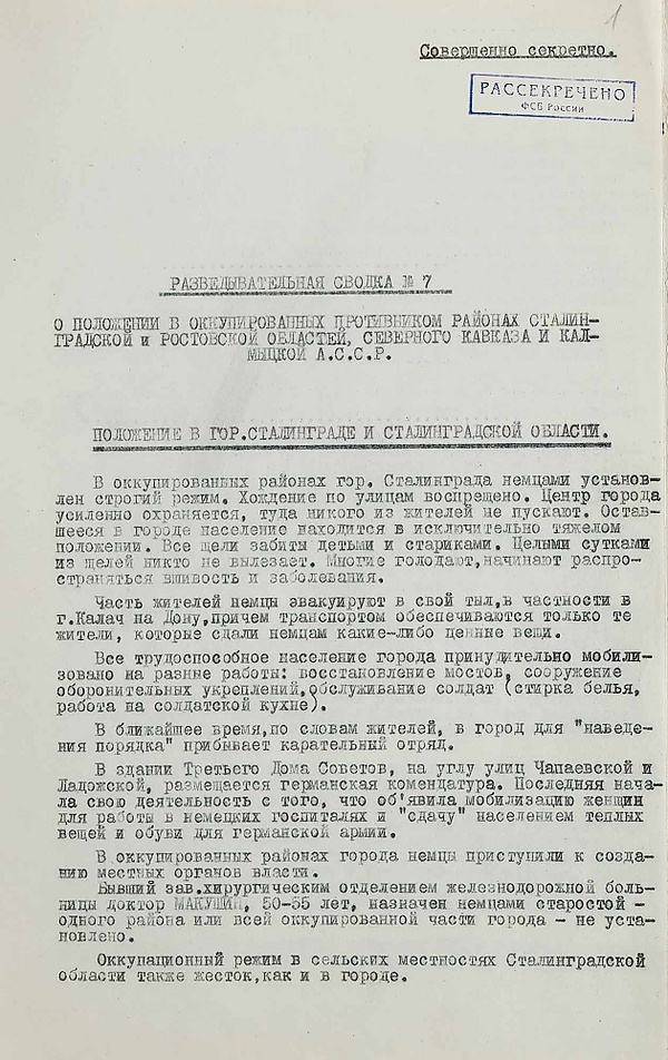 Разведывательная сводка №7. О положении в оккупированных районах Сталинградской и Ростовской областей, Северного Кавказа и Калмыцкой А.С.С.Р
