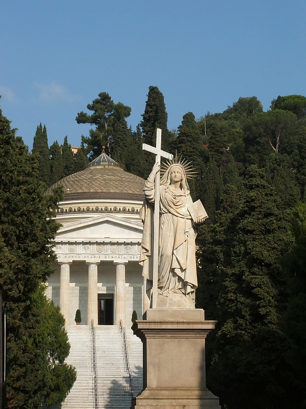 В Генуе проект монументального кладбища, рассчитанного на шестьдесят тысяч могил, разработал городской архитектор Карло Барабино (1768—1835). Он предложил в центре некрополя, густо засаженного миртами, лаврами и олеандрами, поместить миниатюрную копию Пантеона. Замыслы Барабино были воплощены его учениками в 1844—1851 годах на территории бывшей виллы Ваккарецца.