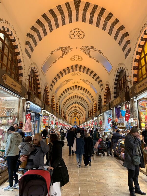 В 1845 году был построен первый постоянный Галатский мост, в 1850 году по Босфору пошли пароходы. В 1871 году начинает действовать трамвайная линия, а в 1875 году карликовая линия метро Тюнель. В 1889 году открыто пассажирское железнодорожное сообщение Париж — Константинополь[29][30][31] («Восточный экспресс»). В конце XIX века в городе создаётся современная по тем временам система электро- и водоснабжения.