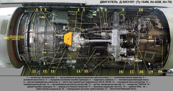 Воздушный турбостартёр (ВТС) на двигателе самолёта Ту-154М (поз. 19)