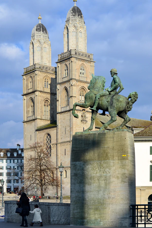 - Перед Собором Богородицы (нем. Fraumünster) на левом берегу Лиммата установлена статуя бывшего бургомистра Ганса Вальдманна.