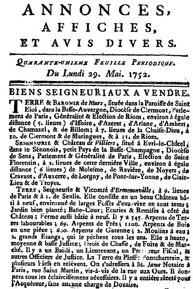 Важнейшее из них состояло в системе продажи государственных должностей (paulette), охватывавшей весь государственный аппарат как в Париже, так и в провинциях. Практика продажи государственных должностей появилась во Франции ещё в начале XVI века при Людовике XII, но в окончательном виде сложилась в начале XVII века при Генрихе IV, когда эта система стала всеохватывающей, пожизненной и наследственной, и просуществовала до 1789 года. Стоимость высших государственных должностей в последние десятилетия перед Великой французской революцией достигала 200—300 тысяч ливров (фунтов) и более, что было эквивалентно стоимости роскошного особняка с полной обстановкой[7]. Вместе с покупкой должности чиновник получал право на пожизненную «ренту», которая, как правило, позволяла многократно окупить произведённые затраты. По словам А. Токвиля, система продажи должностей постепенно стала чем-то столь странным, чего никогда ранее не было видано в мире[8].