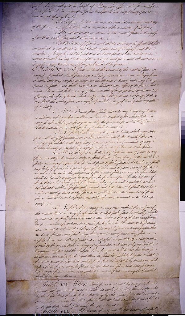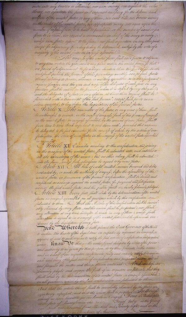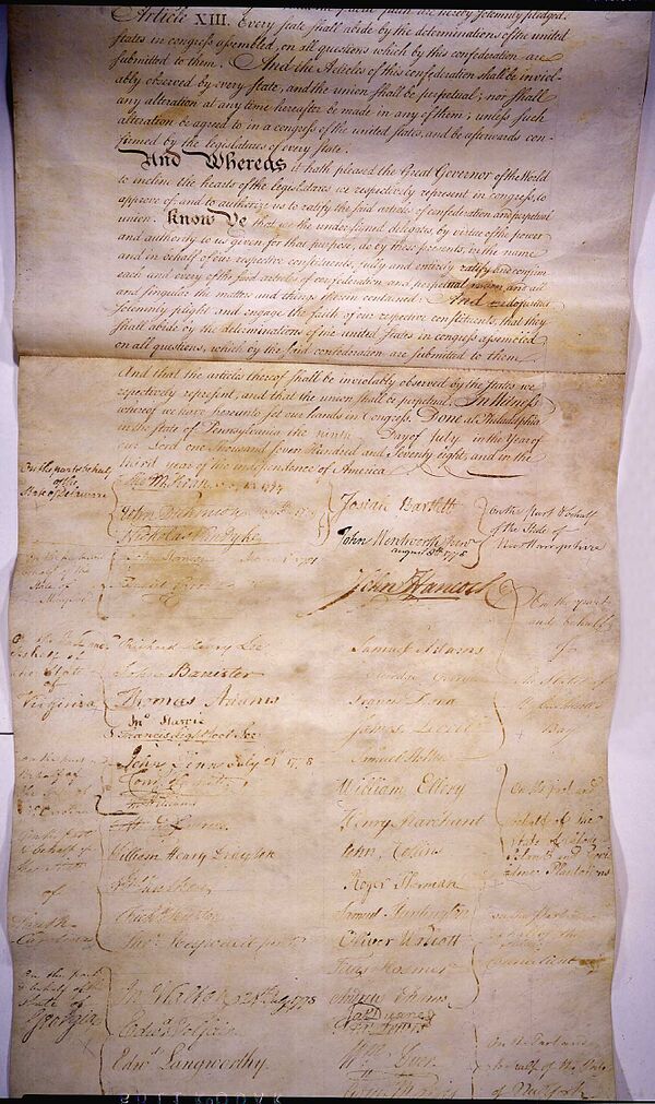 Статьи Конфедерации были составлены на пяти страницах и состоят из преамбулы, тринадцати статей и списка подписей.