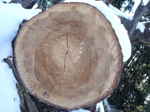 Ствол состоит из 5 слоёв: сердцевины, древесины, камбия, луба и коры.