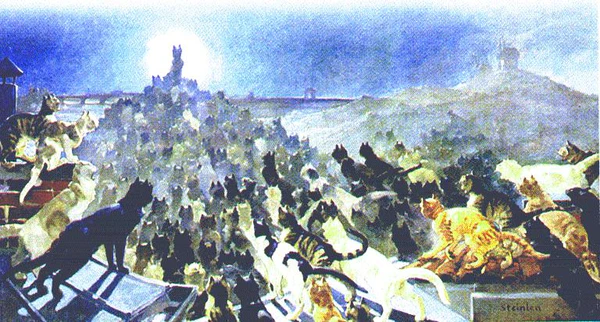 Т.А. Стейнлен стал знаменитым благодаря своим парижским плакатам, созданным около 1900 года, его сценам из ночной жизни Монмартра и, конечно, его «кошачьим» картинам и графике, сделавшим ему имя. Другие грани таланта художника менее известны: его живопись, скульптура и графика посвящённые событиям Первой мировой войны, особенно событиям в Сербии и Бельгии. Стейнлен был самоучкой, и тем не менее, наследником богатых художественных традиций. В его работах чувствуется влияние творчества Делакруа, Домье, Доре и Мане. То распространение и та популярность, что имели работы Стейнлена в Париже во времена Belle Epoque, сделало художника центральной фигурой в европейском искусстве начала XX века; они стали источником вдохновения для многочисленных мастеров авангарда, в том числе и Пикассо.