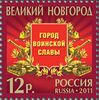 20 апреля 2011 года поступила в обращение почтовая марка, а 1 октября 2012 года в обращение была выпущена памятная монета «Города воинской славы Великий Новгород» номиналом 10 рублей. Ещё одним символом стал Меч Победы, вручённый Великому Новгороду, как и другим городам воинской славы, 9 июня 2022 года в зале Славы Музея Победы в парке Победы на Поклонной горе в Москве. Изготовленный в Златоусте меч покрыт золотом высшей 999,9 пробы и инкрустирован уральскими самоцветами — гранатами, символизирующими пролитую кровь, и голубыми топазами, которые считаются символом мира. Длина мечей составляет 1,2 метра, вес — более пяти килограммов. На клинке, украшенном растительным орнаментом, высечены знаменитые слова князя Александра Невского: «Кто с мечом к нам придет, тот от меча и погибнет». Ранее, в апреле 2015 года, аналогичные Мечи Победы были переданы на вечное хранение городам-героям[2].