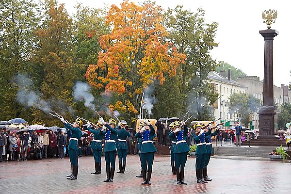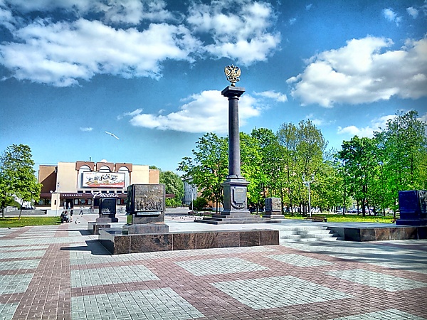 5 августа 2009 года градостроительный совет при Администрации Великого Новгорода определил место расположения стелы «Город воинской славы», выбрав сквер у Киноцентра. Как сообщалось на заседании, эта территория исторически связана с героическими подвигами наших предков, и в архитектурном плане подходит для размещения памятной колонны. Здесь часто бывают ветераны и проводят свободное время семьи с детьми.