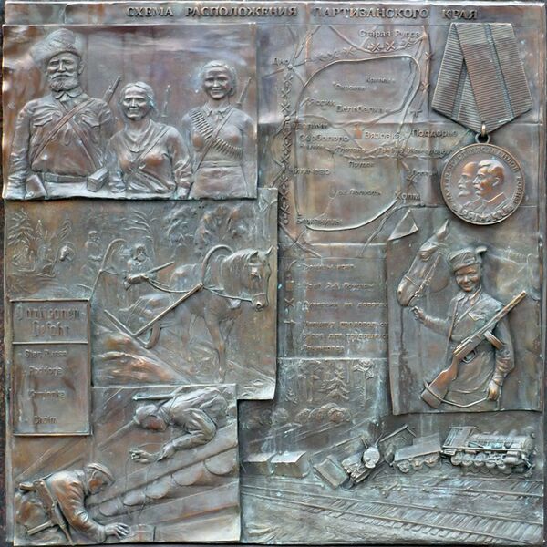 Весной 2011 года были согласованы 16 фор-эскизов и тексты поясняющих надписей под барельефами. Работу по изготовлению барельефов провели новгородские скульпторы Сергей Гаев и Вадим Боровых.