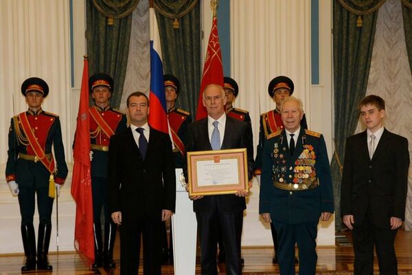После введения в 2006 году почётного звания «Город воинской славы» ветеранская организация Волоколамска выступила с инициативой о присвоении городу этого высокого знака отличия, поддержанной городскими и областными органами власти, и Указом президента Российской Федерации от 25 марта 2010 года № 338 почётное звание было присвоено[5]. 4 мая 2010 года в Екатерининском зале Московского Кремля состоялась церемония вручения грамот о присвоении высокого звания городам, в числе которых был Волоколамск[6].