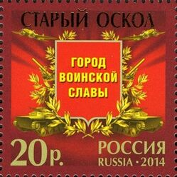 2 июня 2014 года в обращение была выпущена памятная монета «Город воинской славы Старый Оскол» номиналом 10 рублей, а 28 августа 2014 года поступила в обращение соответствующая почтовая марка.