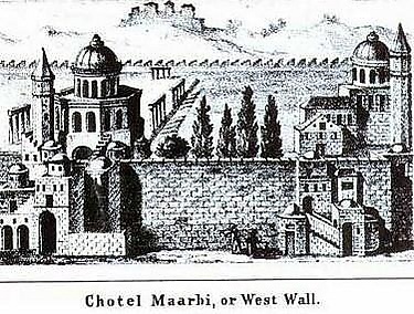 С течением столетий земля, прилегающая к Стене, стала застраиваться. Публичный доступ к Стене осуществлялся через Марокканский Квартал — лабиринт узких переулков. В мае 1840 года изданный Ибрагимом Пашой фирман запретил евреям пролагать проход перед Стеной. Он также предостерёг их от «повышения там своего голоса и демонстрирования своих книг». Им было, однако, разрешено «наносить к ней визиты, как встарь»[27].