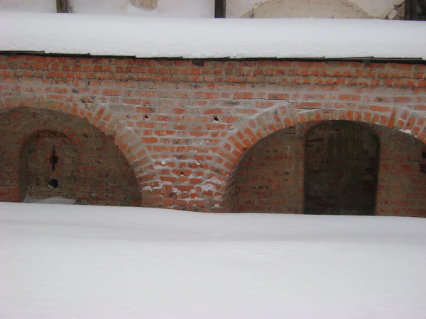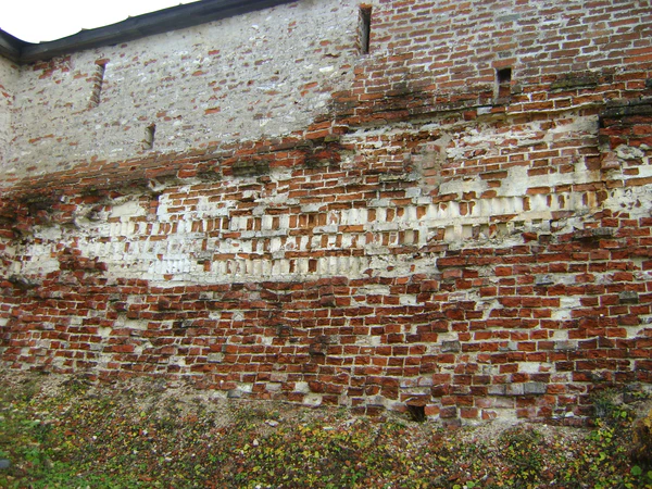 Стена на этом участке была двухуровневая. От нижнего яруса на всём протяжении стены сохранилась (где-то восстановленная новым кирпичом) цепь коробовых арок с амбразурами для подошвенного боя (сохранились не везде). Вторым ярусом является потолок над арками, который служил ходом вдоль стены для большего удобства ведения боя.[1]
