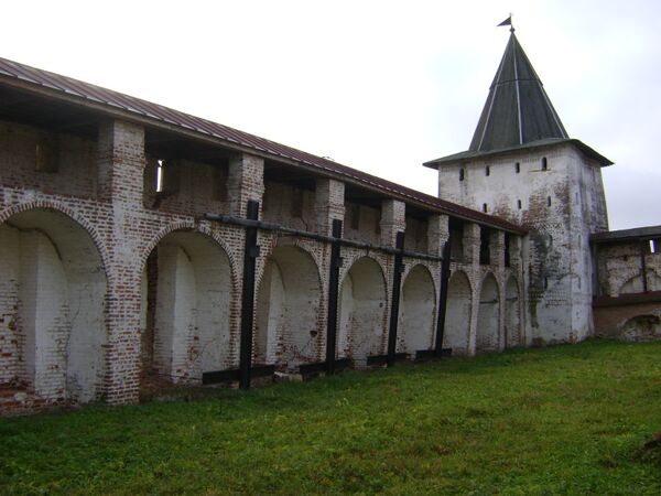Стены Успенского монастыря — это часть комплекса Кирилло-Белозерского монастыря, построенная в XVI веке, однако южное и северное прясла были перестроены в XVII веке.[1].