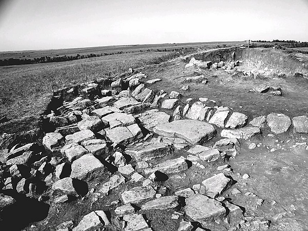 Интересным явлением является «дорога» из плит правильной формы, раскинувшаяся между курганами. Выявлено более десятка плит с прорезями шириной 2-3 см и длиной до 30 см. Найденный при раскопках кургана крупнозернистый окварцованный песчаник, которого нет в окрестностях памятника, свидетельствует о поисках соответствующих горных пород на расстояниях до 10-15 км. Красная охра, которой был покрыт череп покойника в захоронении кургана, доказывает связанность населения с разработкой железных руд с целью выработки минеральной краски. Многочисленные сосуды, обнаруженные в захоронении, свидетельствуют о разработке местных глин, знании их свойств при термической обработке изделий. Интересной особенностью одного из сосудов из срубного захоронения является клеймо в виде трезубца.