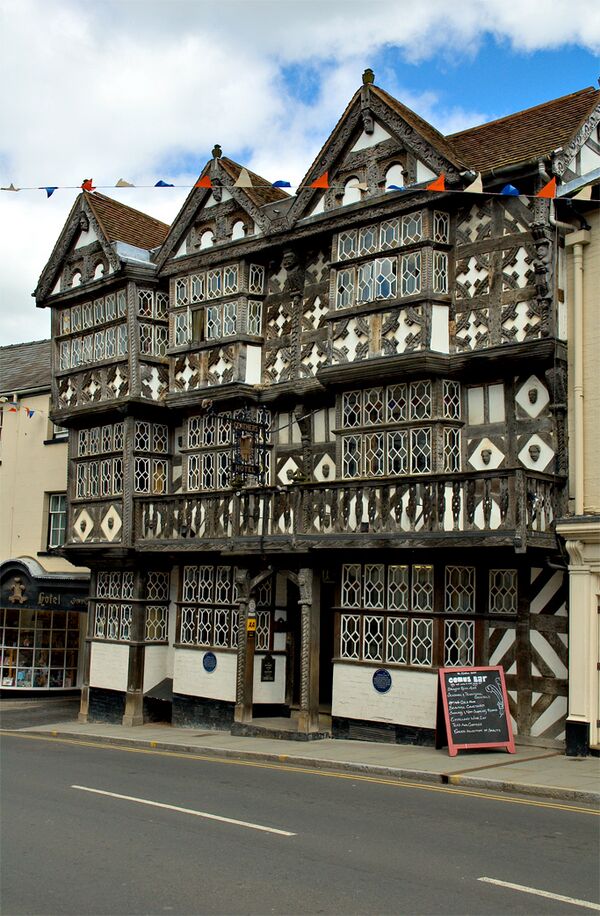 - Выкрашенные белые стены в контрасте с тёмными дубовыми панелями фахверковых домов,