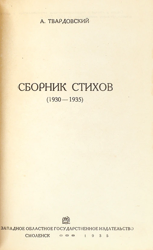 - вторая половина 1920-х — 1930-е годы — начало творчества и становление Твардовского-поэта. Первые стихотворения опубликованы в 1924 году, первая поэма («Путь к социализму») — в 1931 году. В 1935 году вышел «Сборник стихотворений 1930—1935». Произведение, с которого, по мнению А. Т. Твардовского, началось его вхождение в литературу, — поэма о коллективизации «Страна Муравия» (1936). В 1938 году выходит сборник «Дорога», в начале 1939 года — «Сельская хроника».