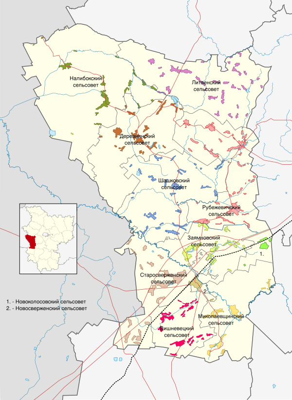 | 9. | Рубежевичский | аг. Рубежевичи | ↘ 2219 | 223,6 | 1056 | 33 |